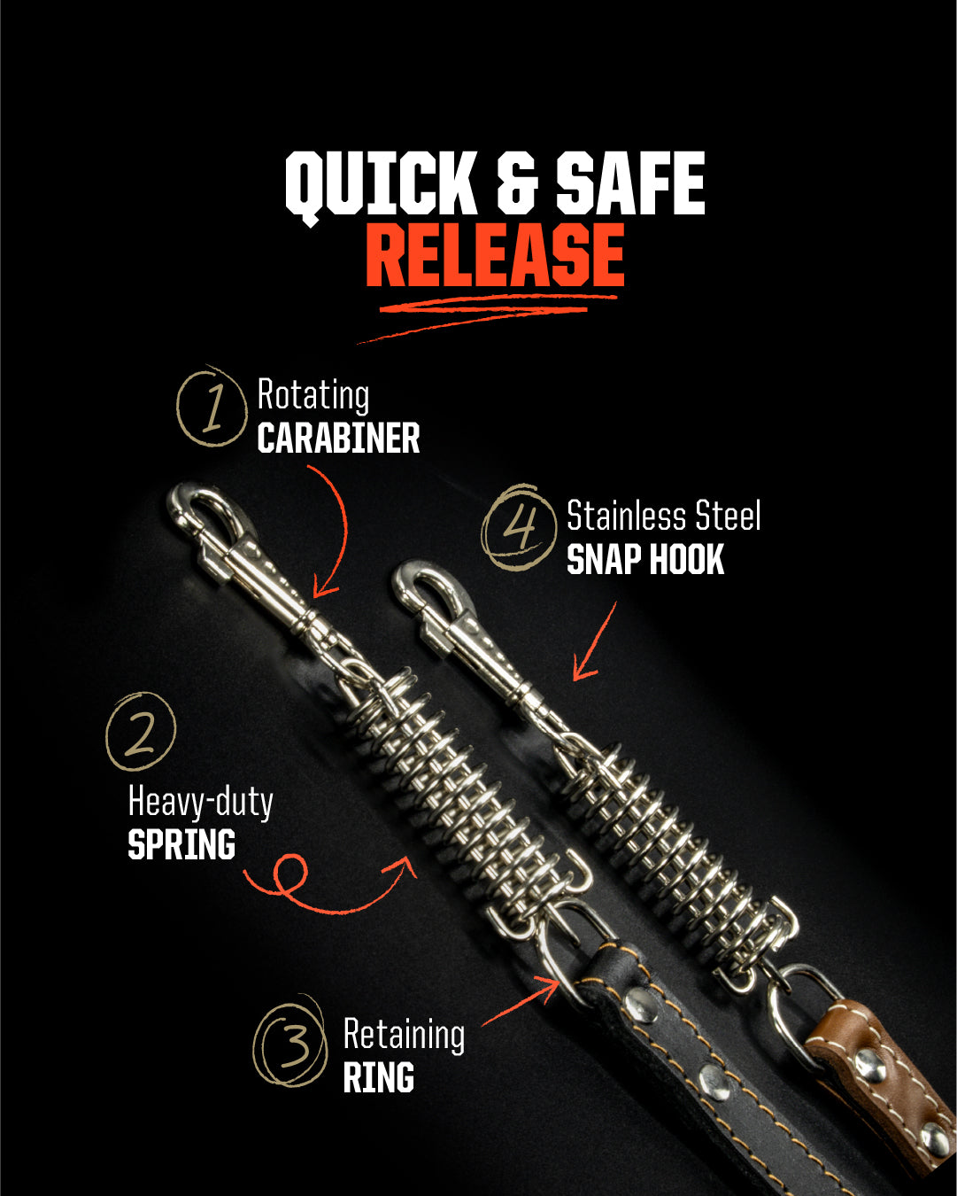 - Robust leather leash set with spring clasp