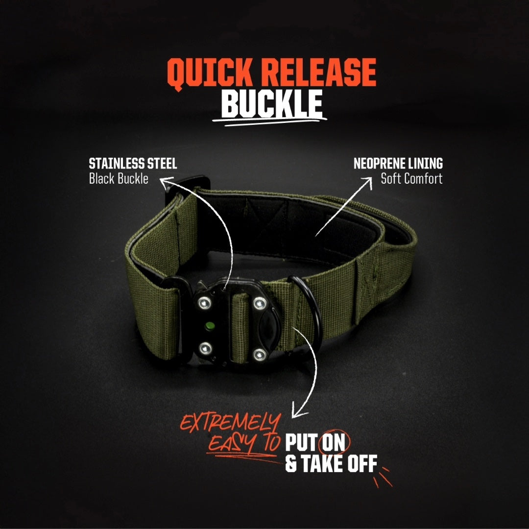 In den Farben Schwarz und Grün erhältlich kombiniert dieses Premium Hundehalsband Funktion, Kontrolle und markanten Strong Dogs Charakter.